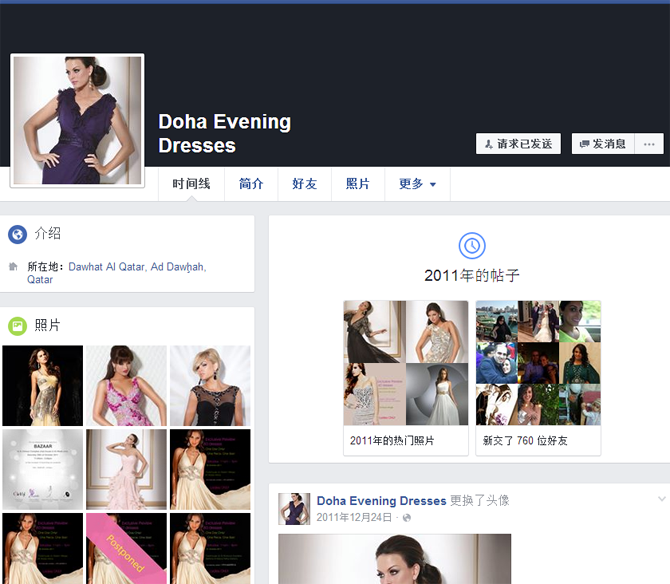 其次我们可以点击时间线了解客户在某个时间段发的帖子,就可以知道她在Facebook上一年的动态。这是我们调查客户的一个主要途径。比如我点一下2011,就可以看到她2011年的全部动态。