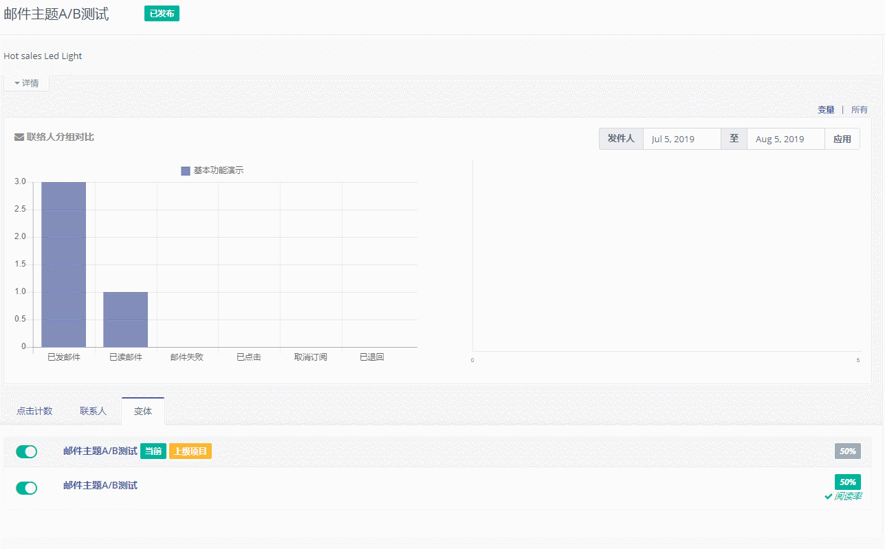 并且数据大师,还将自动将你的邮件发送结果做出分析对比,自动分出胜者,作为下次邮件营销的参考。