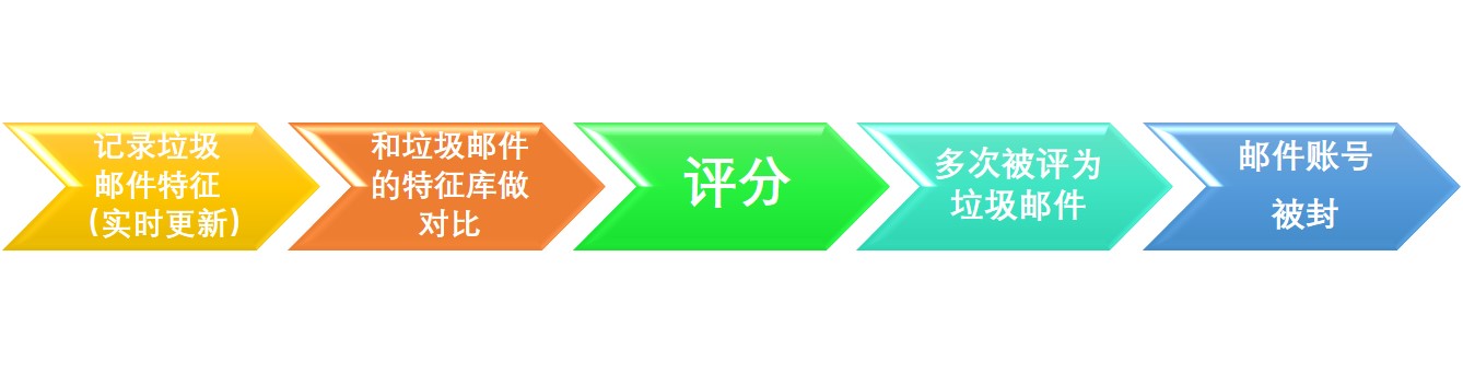 一般的邮件服务器,如阿里,网易等都带有一个列表,它会记录垃圾邮件的一些特征,且这个特征库是不断更新的。当我们发送邮件时,邮件服务器会将邮件与特征库里的列表做对比,并对邮件打出相应的评分,利用评分来判断您的邮件是否为垃圾邮件。
