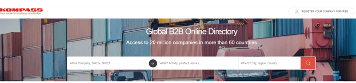 kompass不用注册就能用公司名、产品、公司地址等信息搜索到公司的电话、规模、法人等等。
