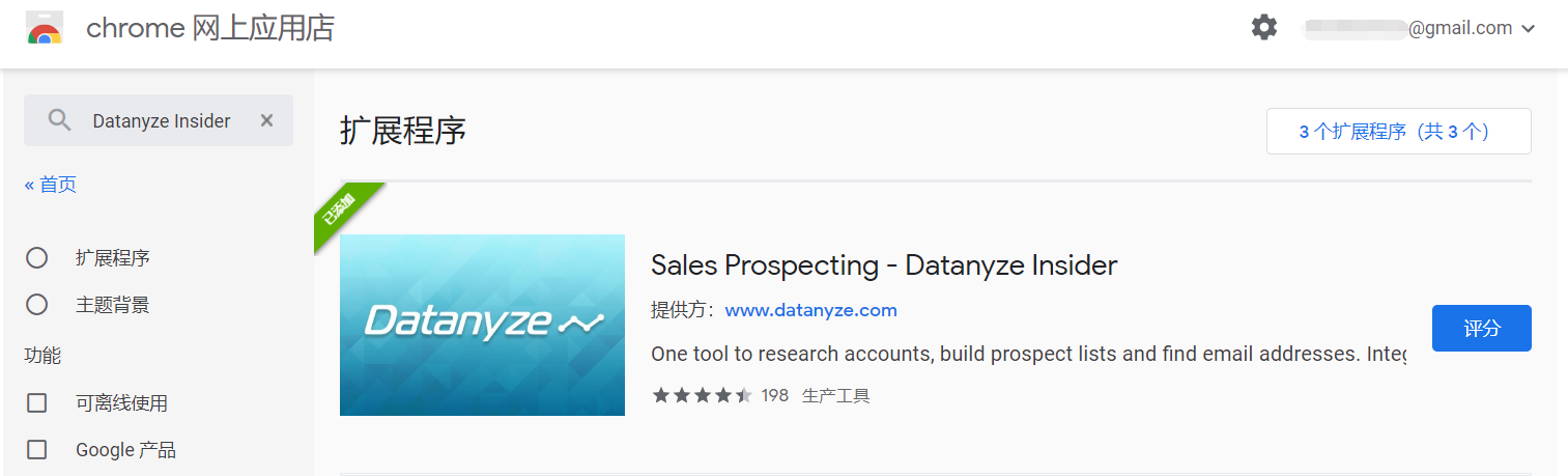 首先,打开谷歌Chrome浏览器,进入其扩展程序。安装一个名为Datanyze Insider的扩展程序,如下图所示: