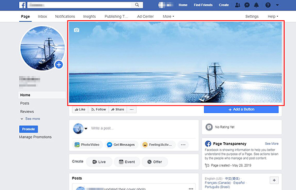 5、然后就可以给你的公司主页上传图片作为主页封面,那么这样一个简单的Facebook公司主页就创建好了。