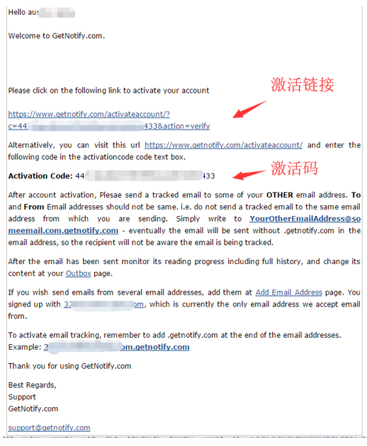 (2)用一个其他邮箱测试一下是否激活成功,注意发送时在收件邮箱后加上“ .getnotify.com ”即可。
