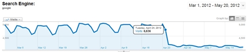WPMU也是因为在其他网站产生了一堆Footer Link(页尾链接)而被处罚,如下图就是被处罚后流量降低的情况: