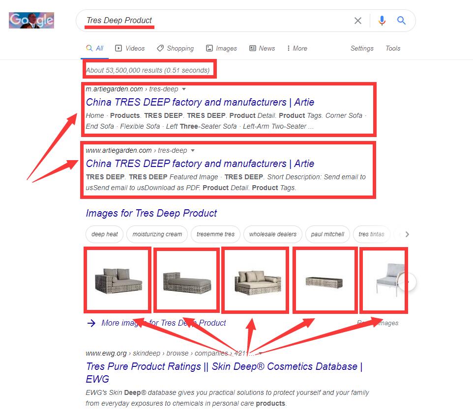 当国外采购商想要在谷歌搜索某一件产品时,谷歌搜索的结果是让他去某某平台上去找,然后采购商去平台上搜索了某一个产品。