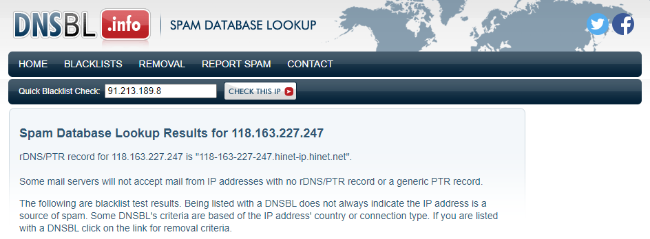 工具地址:https://www.dnsbl.info/dnsbl-database-check.php