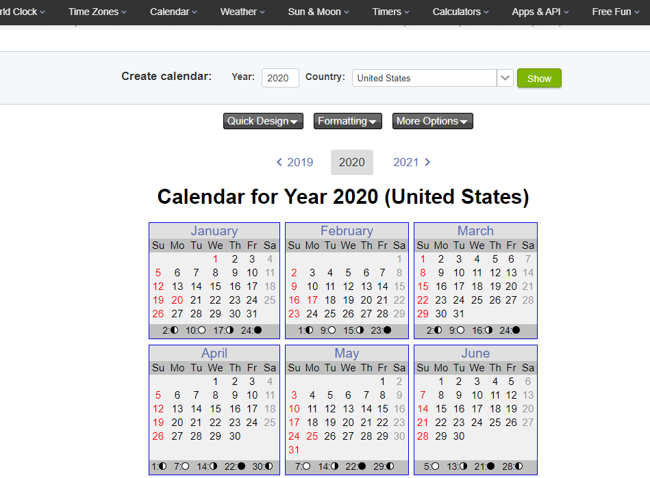 工具地址:https://www.timeanddate.com/calendar/?year=2020&country=29