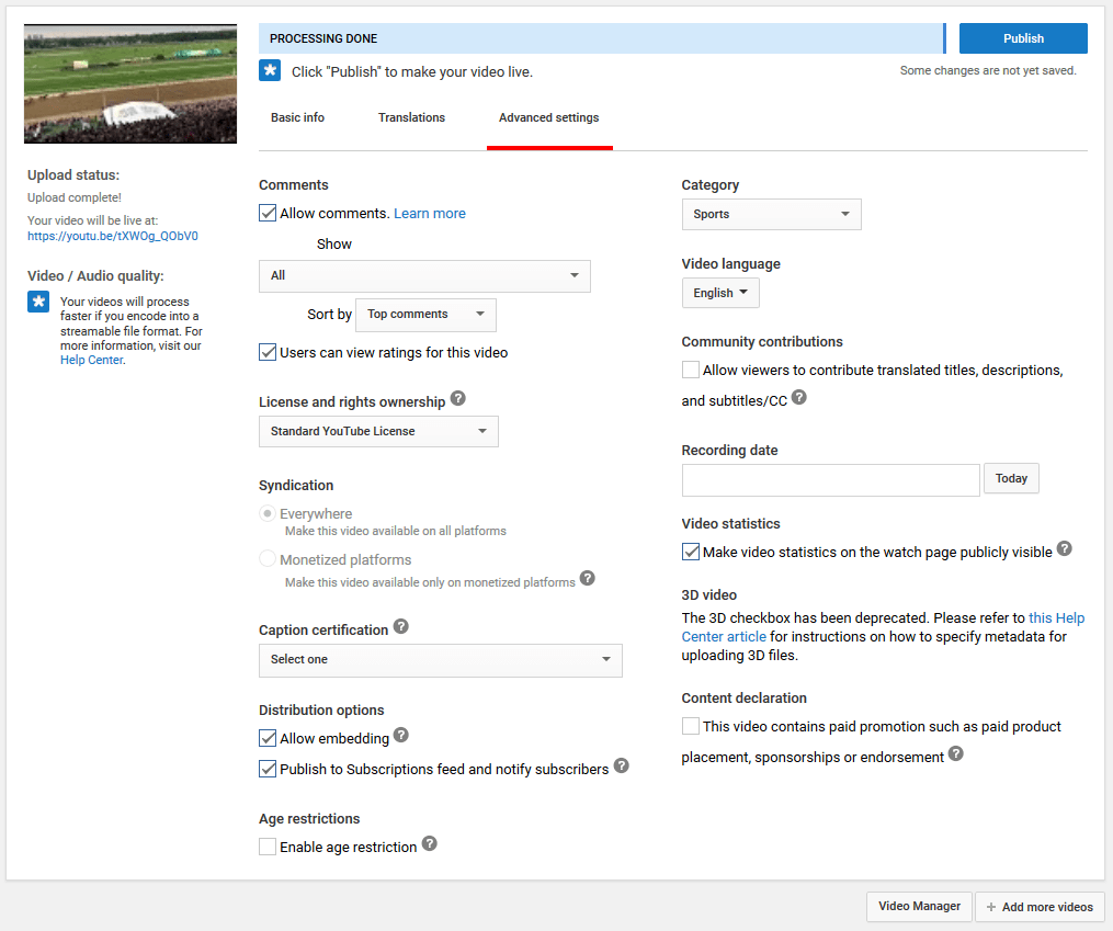 虽然它对视频的整体可见性没有实际影响,但当观看者点击视频下方的图表图标时,可在观看页面上启用视频统计。这可以打开或者关闭,通常情况下,还是建议大家打开此统计。