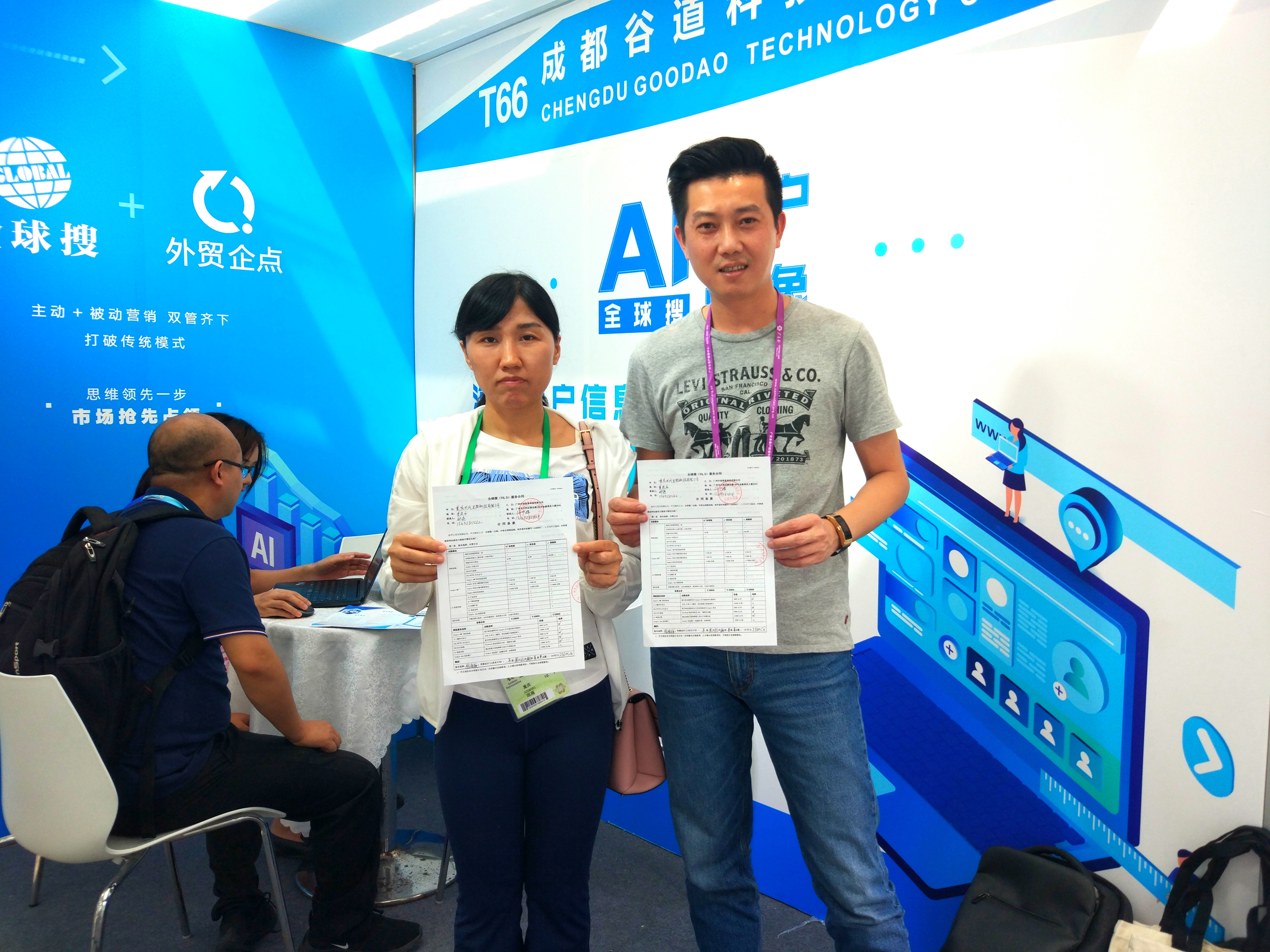 我们也遇见了不少新客户,对于的全球搜产品的技术优势很是好奇,纷纷上前来与我们的工作人员沟通,经过一番针对性交流后,很多客户直接现场签约,希望通过我们的新技术来摆脱他们企业目前遇见的网站建设难、引流难、询盘质量低等发展困境。