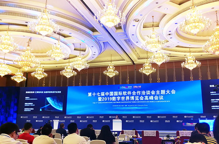 会上,成都市委副书记、市长罗强,中国工程院院士谭建荣,成都市副市长曹俊杰,中国电子信息行业联合会副会长、中芯国际集成电路制造有限公司董事长周子学,四川省经济和信息化厅副厅长皮亦鸣先生,国际数据(亚洲)集团总裁徐洲共同开启第十七届中国国际软件合作洽谈会暨2019 数字世界博览会启动仪式。