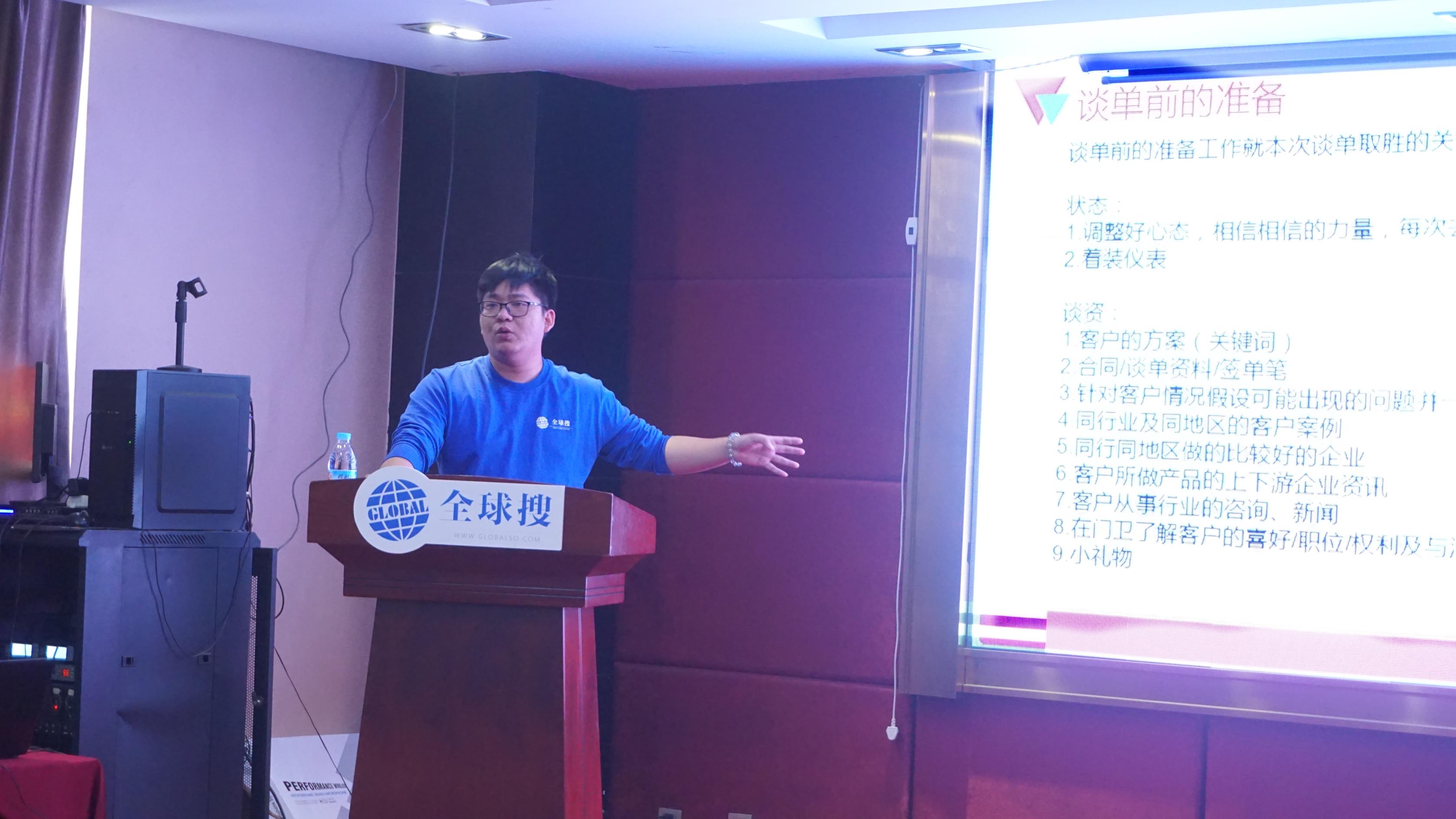 全球搜徐州运营中心负责人唐总,就如何实现本地化运营中心的优势展开了分享,通过实际案例为大家洞悉销售思路在实际情况中是如何灵活运用的,本地化的服务优势如何发挥最大的价值,一个成熟体系的完成需要哪些分支,唐总一一进行了讲解,获得在场人员的一致认同。