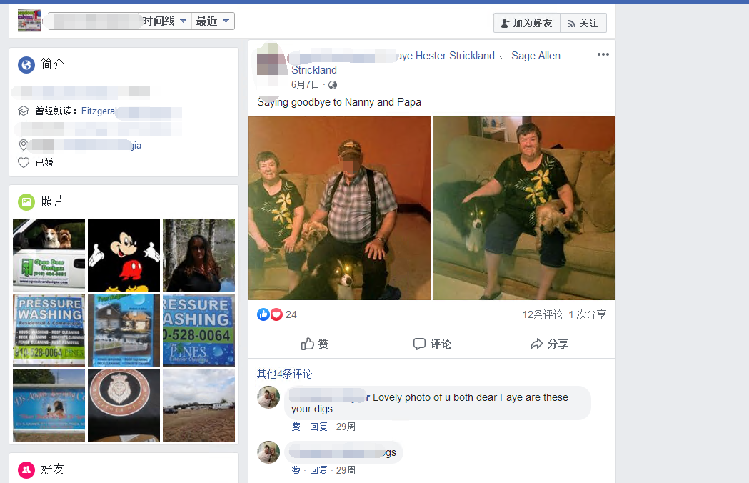 同时我们也找到了他的社交联系方式,通过Facebook我们发现,他家里有两只狗,他很爱谈起他的狗狗日常。通过狗我们又打开了话匣子,偶尔会在Facebook上点赞,评论。