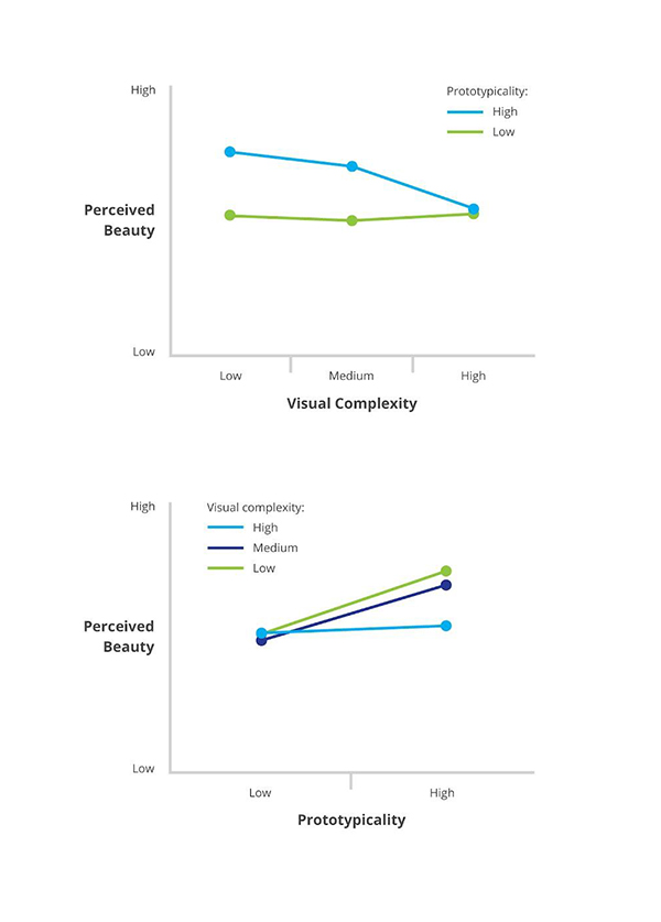 显然,两个因素是相互关联的:如果网站的视觉复杂度很高,即使设计很熟悉,用户也会认为它不那么漂亮。如果设计不熟悉,即网站的样本典型性较比较低,就算网站很简洁,那么用户也会认为这很丑陋。