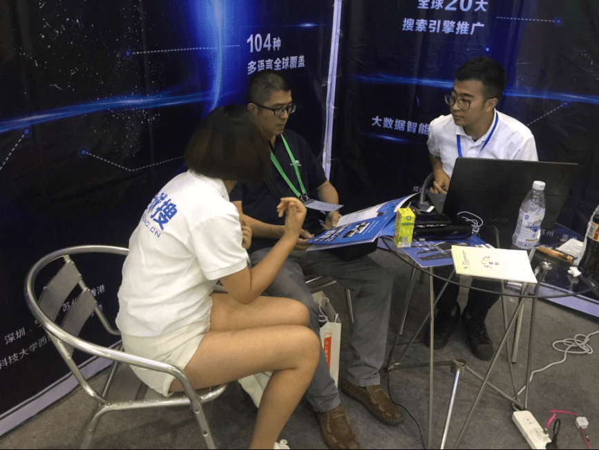 外贸全球搜员工与企业家交流产品