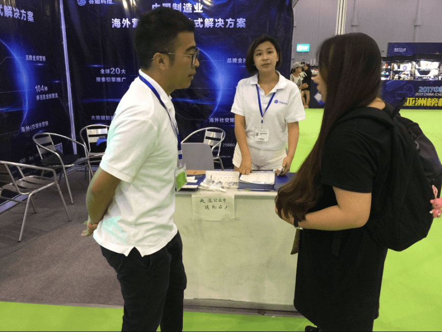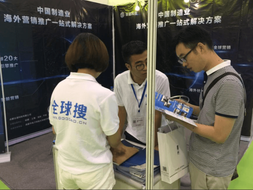 展会期间,各行各业企业家们也积极到外贸全球搜展会前台咨询交流,博览会现场外贸全球搜CEO蒲竞超结合现阶段外贸发展趋势,向企业家们介绍了外贸整合营销整体情况,以及未来外贸全球搜如何利用自身优势与创新技术,为中国企业营销海外解决更多的实际问题。